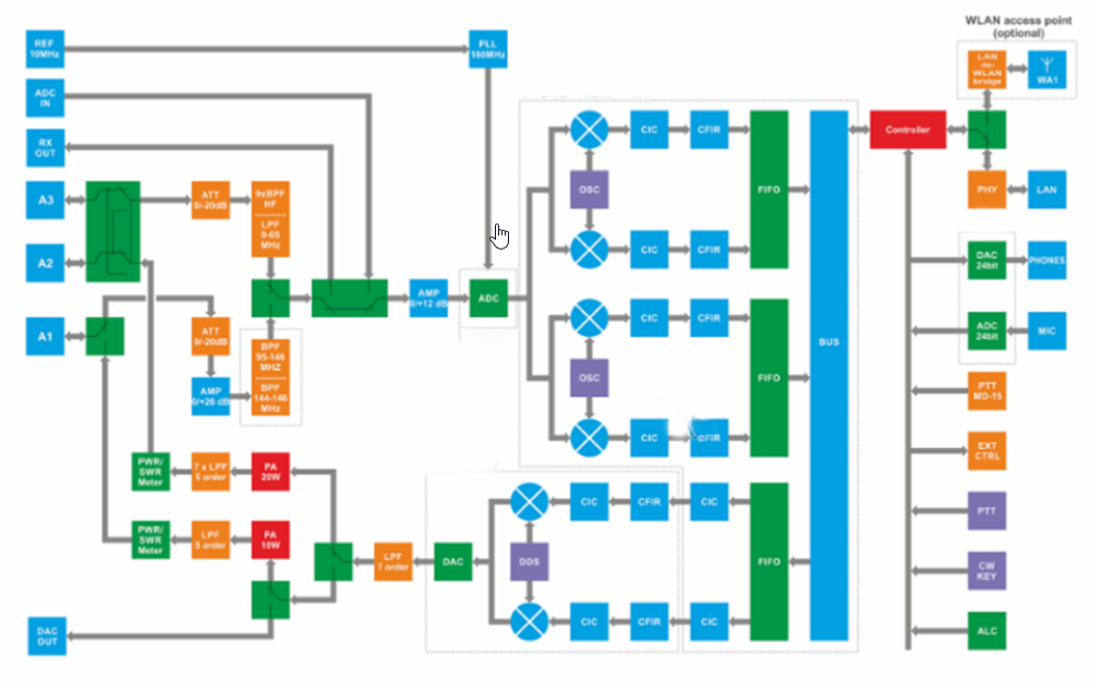 - 2 software RXs + SubRX for each of them (4 slices total) + independent wideband Bandscope up to 80 MHz
